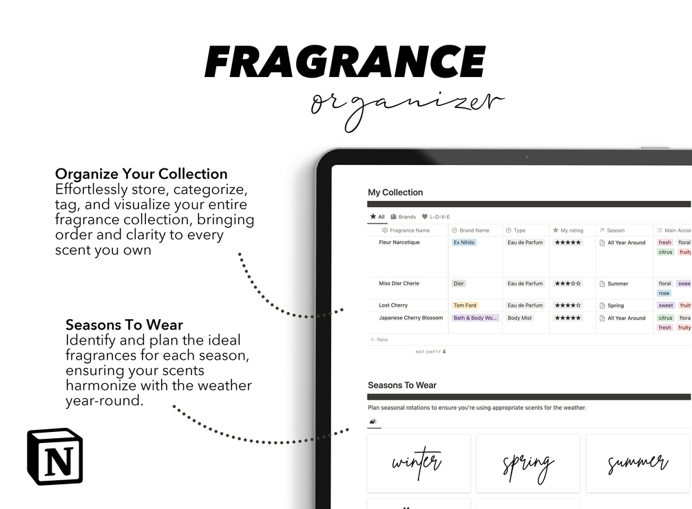 Fragrance Collection Organizer | Notion Template | All-in-One Fragrance Life Planner