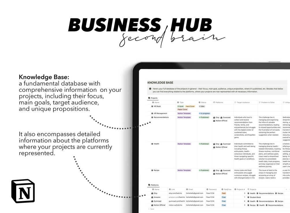 Business Hub Notion Template | Second Brain | Freelance Business Organizer