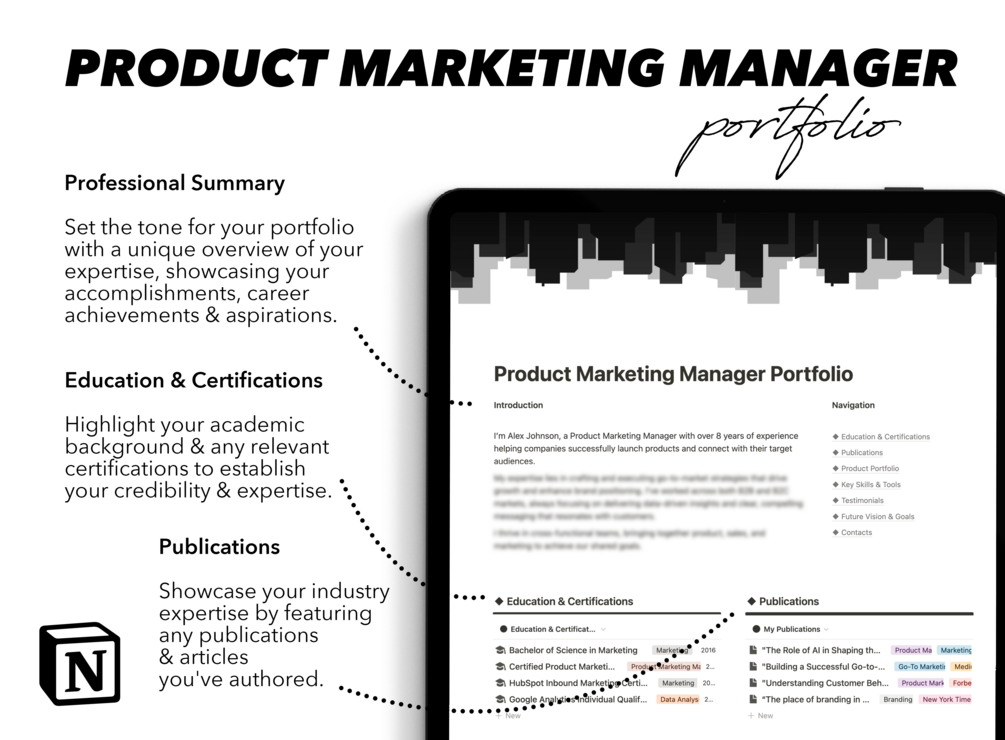 Product Marketing Manager Portfolio to highlight your go-to-market expertise, product portfolio, and secure your next role fast!