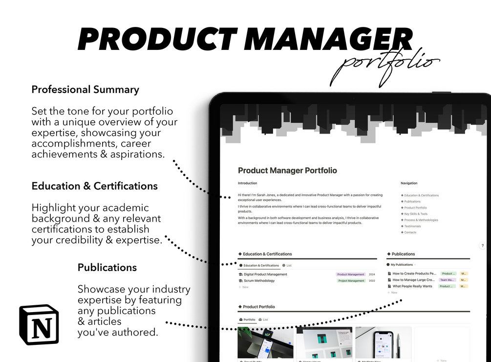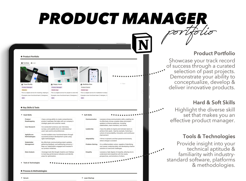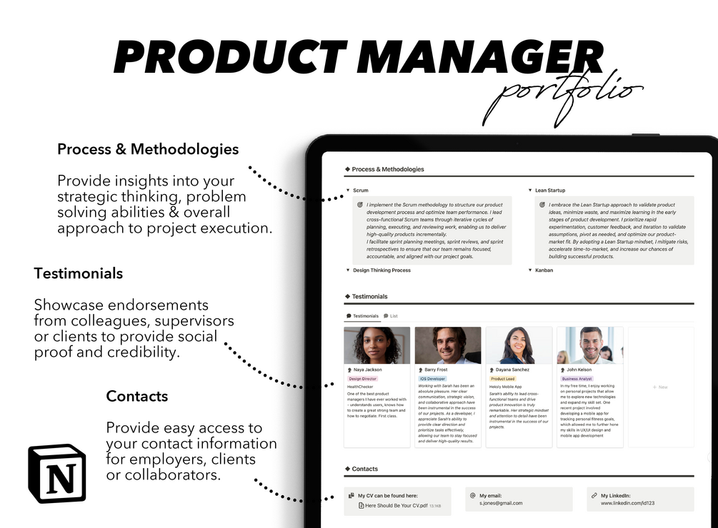Product Manager Portfolio Notion Template | Stand out From the Crowd | Perfect CV